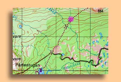 Vi har kommit till vår andra tältplats. Det är många före oss som har tältat här. Jokken som rinner här är fräsch och kall för den kommer uppifrån kalfjället.